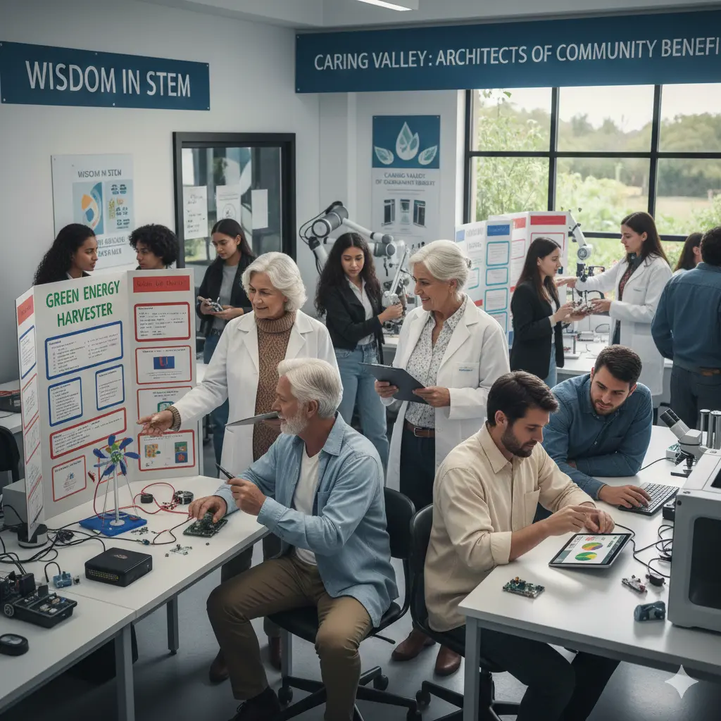 Wisdom in STEM is a community initiative that brings together adults aged 50+ with technical or scientific backgrounds and middle & high school students exploring hands‑on science.